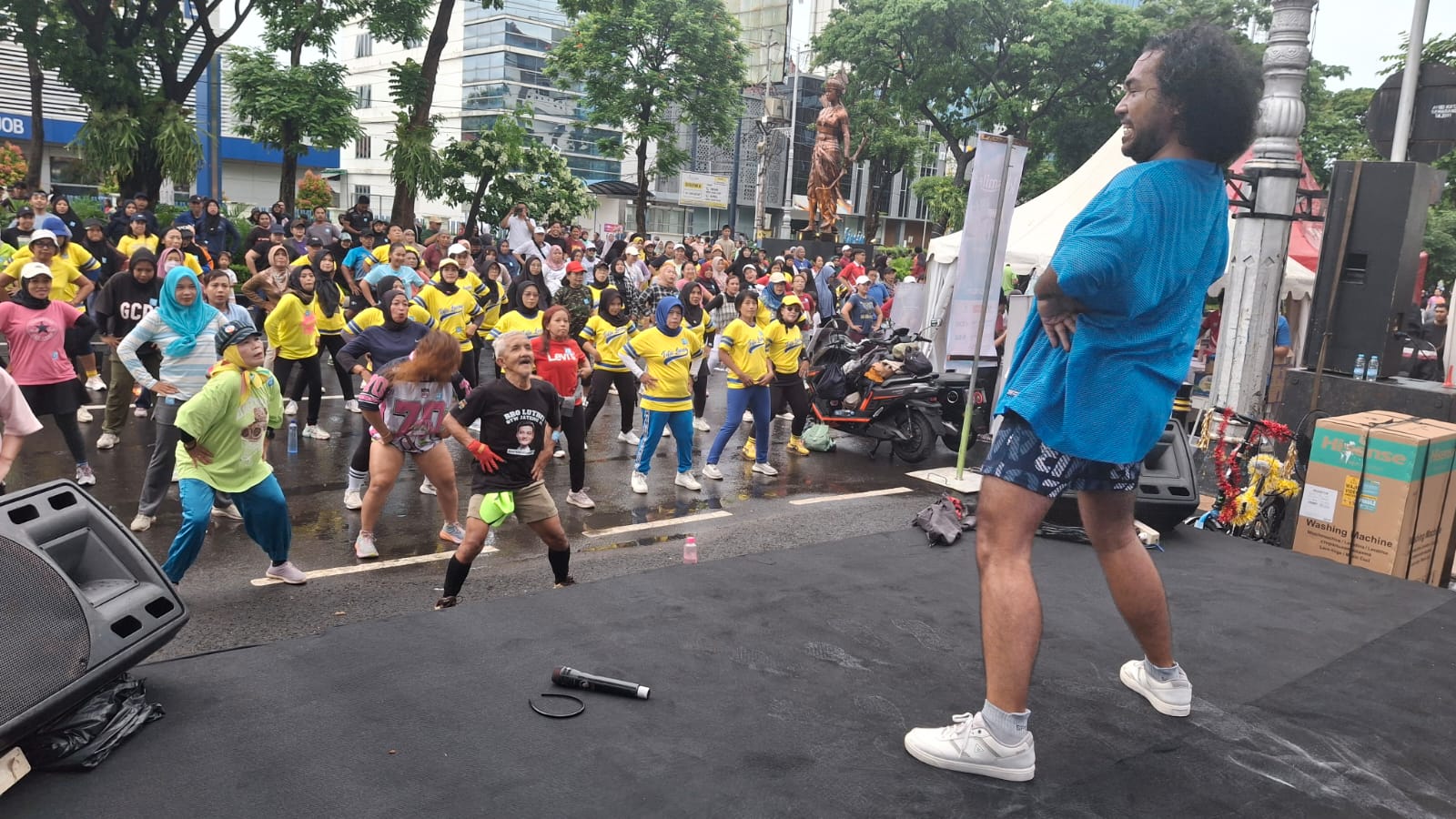 Hal tersebut terlihat dalam puncak acara "Let's Zumba & Smile More" yang digelar di kawasan Car Free Day (CFD) Semarang, Minggu (18/1/2026). Sejak pukul 06.00 WIB, ratusan warga tampak antusias mengikuti Zumba bersama instruktur tamu Din Willy, meski cuaca sempat diguyur gerimis.